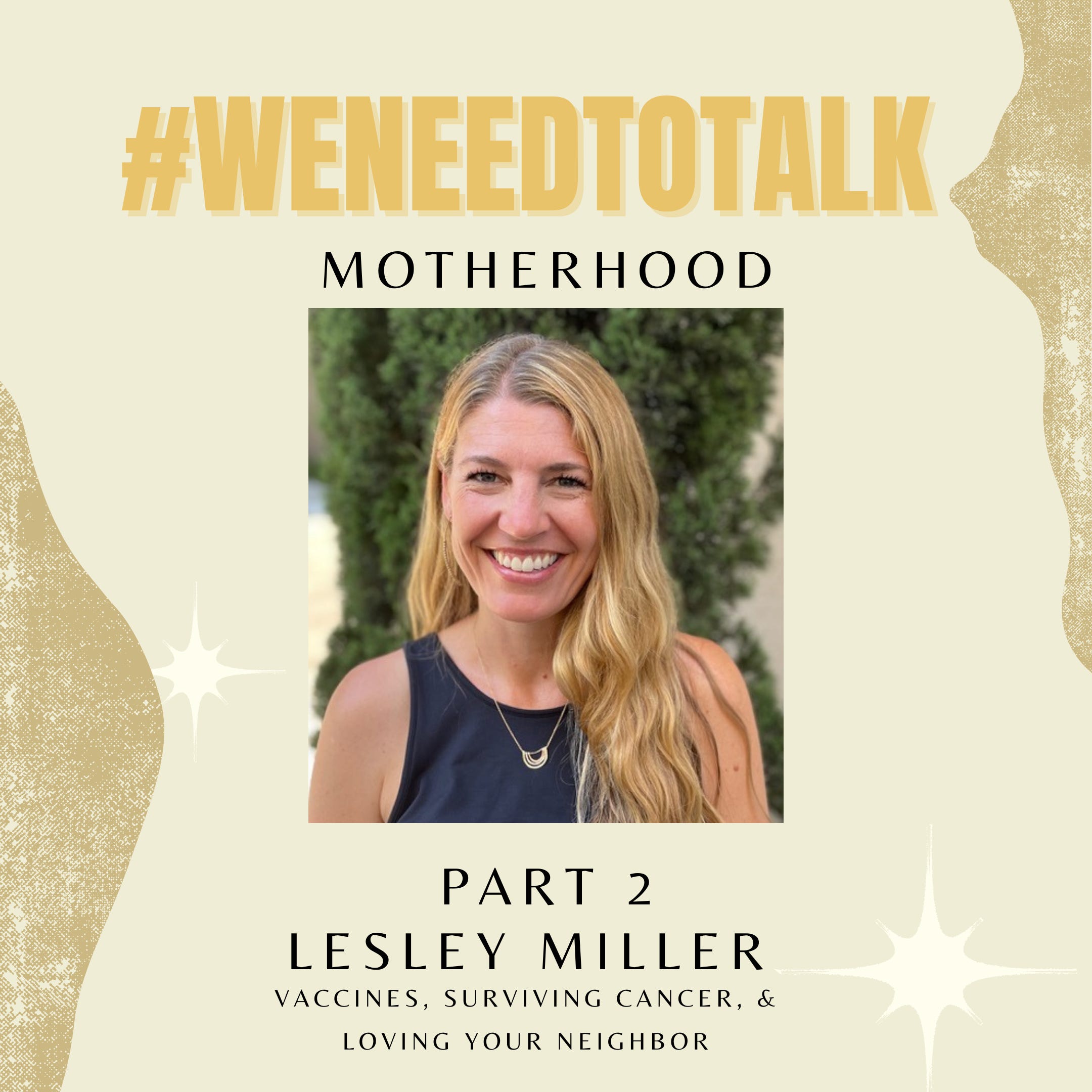 On Part 2 of #WeNeedToTalk-Motherhood, Malynda chats with writer and mom of 3 Lesley Miller about her family dynamic throughout the pandemic, her families health history of surviving cancer twice ( her son and husband), why she continues to encourage people to get the Covid Vaccine and what it truly means to love your neighbor.