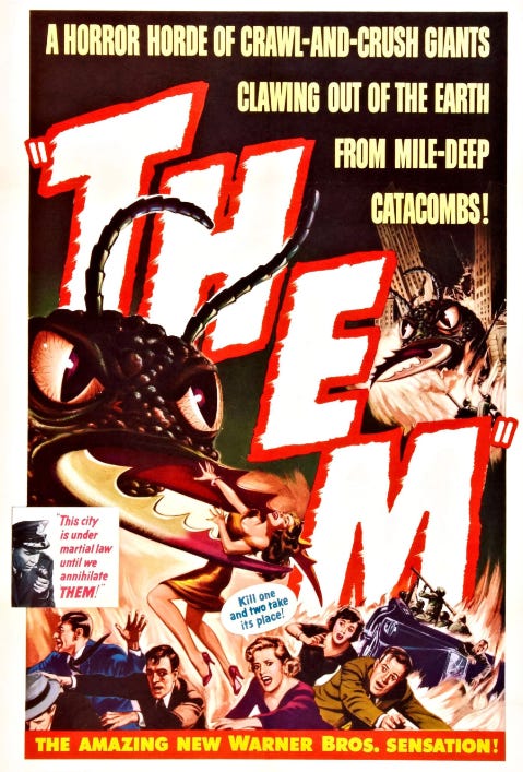 With practical special fx which still delight, Them! is a little sci-fi horror movie which acts as a sort of perfect template for bugs run a muck because of science - most particularly radiation experiments or a vintage nuclear bomb test.