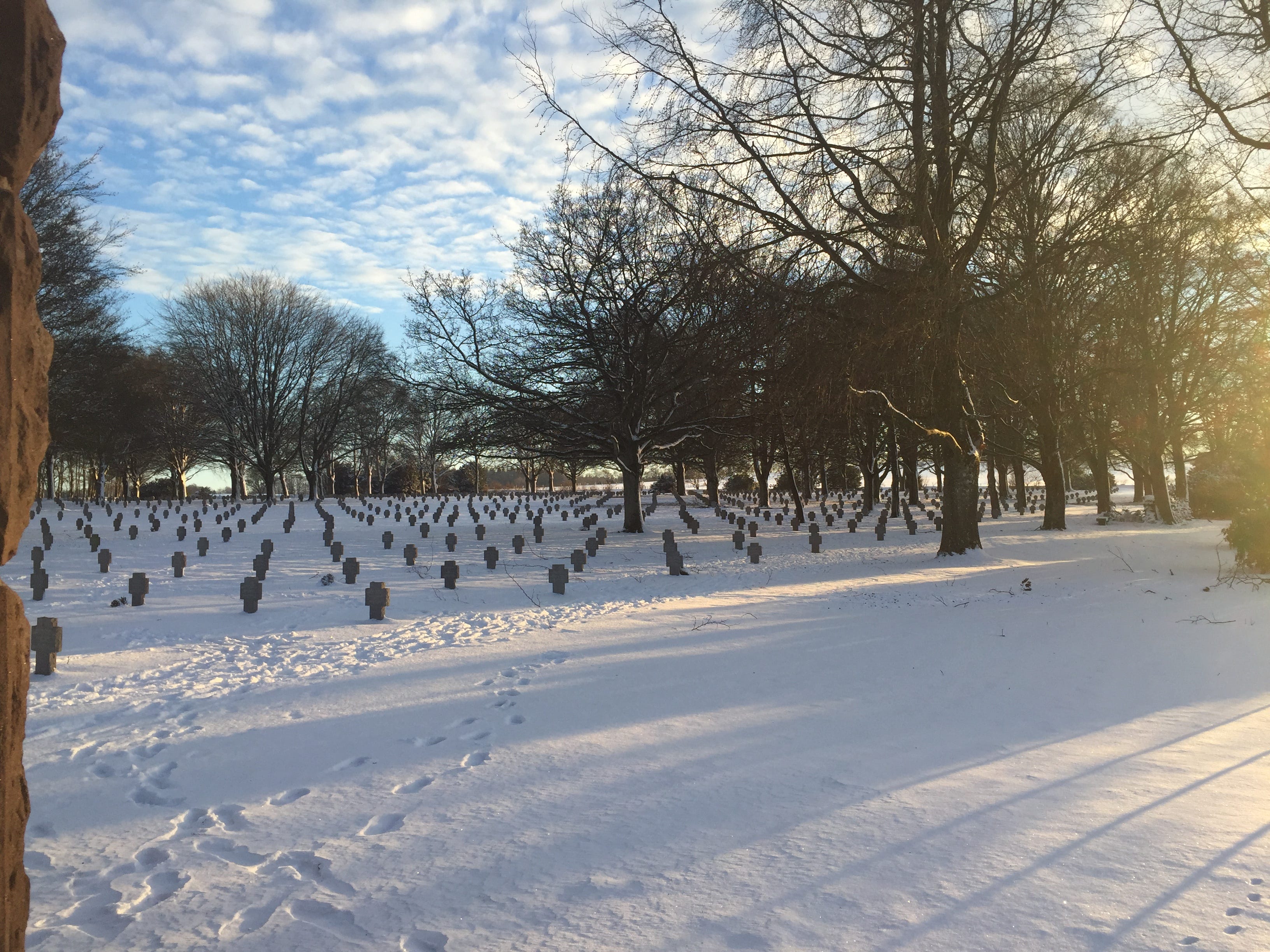 One participant of that battle, George will, an infantryman in a rifle platoon of the 395th Infantry Regiment, wrote a book that described the opening day of the Bulge, starting with a pre-dawn German artillery barrage advancing in front of a full regiment of infantry attacking at five points through snow illuminated by searchlights bouncing off overhead clouds. A second attack came at noon on the 16th, broken up by artillery and 81 mm mortar fire from the weapons platoon, leaving 104 Germans killed and 160 wounded."