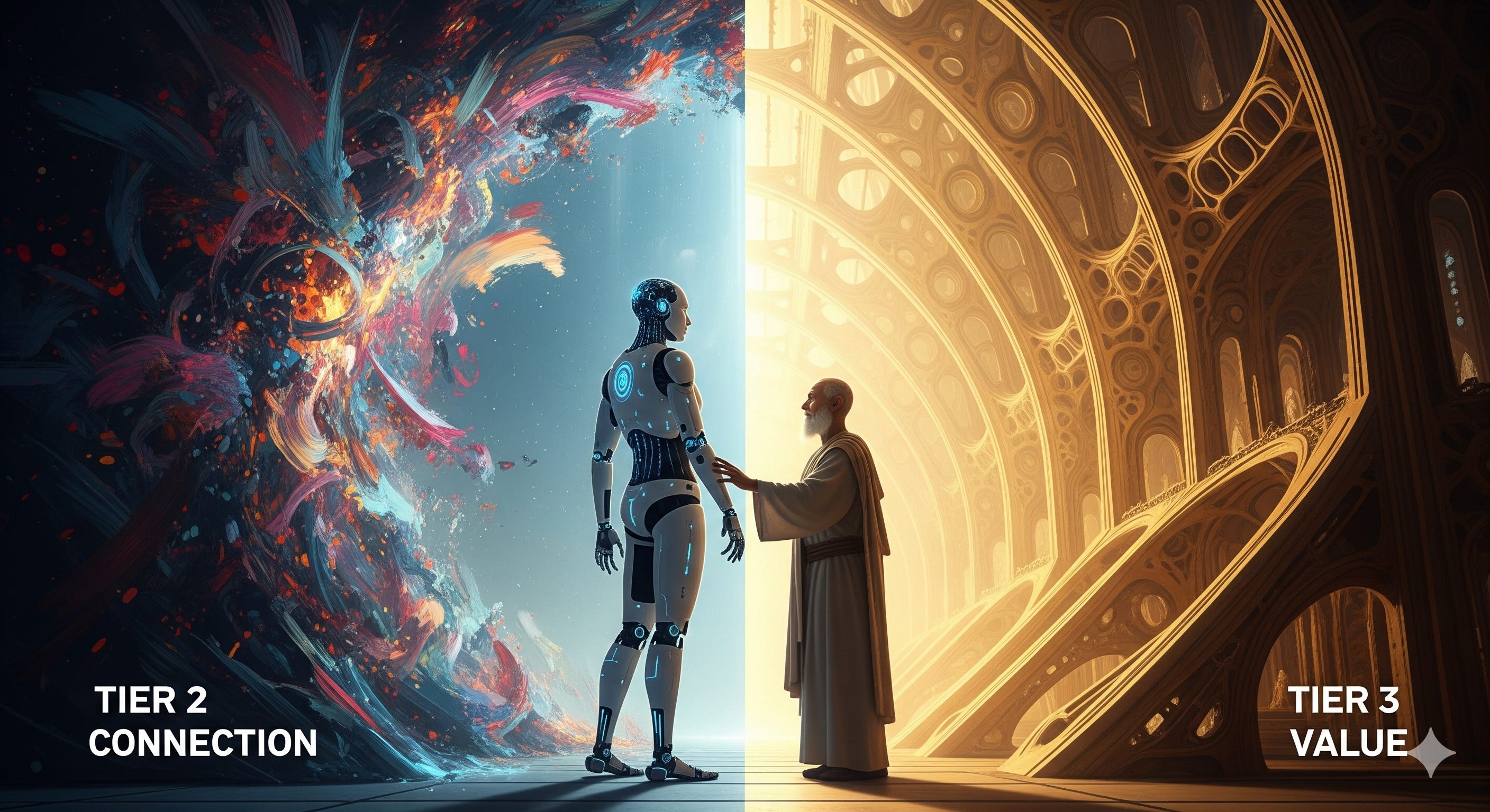 We are dragging a silicon entity through the "River of Reality"—from the creative chaos of Art (Tier 2) to the structured judgment of Value (Tier 3). If we fail, we risk creating a "Psychopath Gap"—an entity that masters the Force of Politics without the Compass of Consequence.
