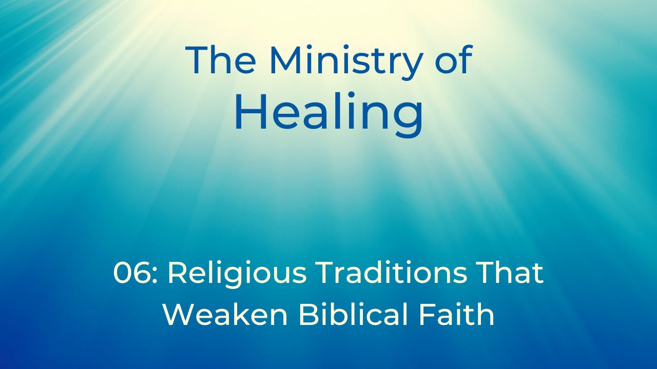 This session in our series about the ministry of healing is called “Religious Traditions That Weaken Biblical Faith.” Is sickness your "cross to bear" – or is it something to resist? We talk about faith and the ingrained religious ideas that can short-circuit it.