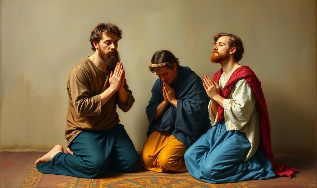"You're both wrong," the third insisted. "Lying prostrate, face down on the floor produces the most effective prayers."
