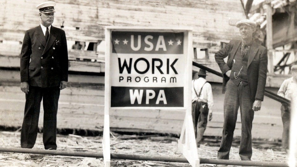 The Works Progress Administration (WPA) is one of the many programs President Franklin Roosevelt funded to put people back to work and pull the U.S. out of the Great Depression. The WPA was funded by the Emergency Relief Appropriations Act signed in 1935, two years after Roosevelt was sworn in as president. It put to work over 8.5 million people on 1.4 million public projects like “creating parks, and building roads, bridges, schools and other public structures”.