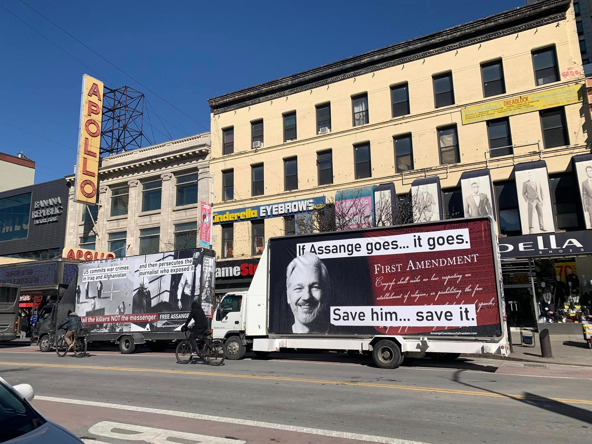 Randy Credico has been rolling billboard trucks around NYC raising awareness about Julian’s case since Wednesday! He is an absolute legend. He crowdfunded this. More billboard trucks will be rolling around Washington, DC on Tuesday & Wednesday during Day X. The legendary caught up with the trucks in Harlem this morning! Click the pic for the Facebook post with even more pics!