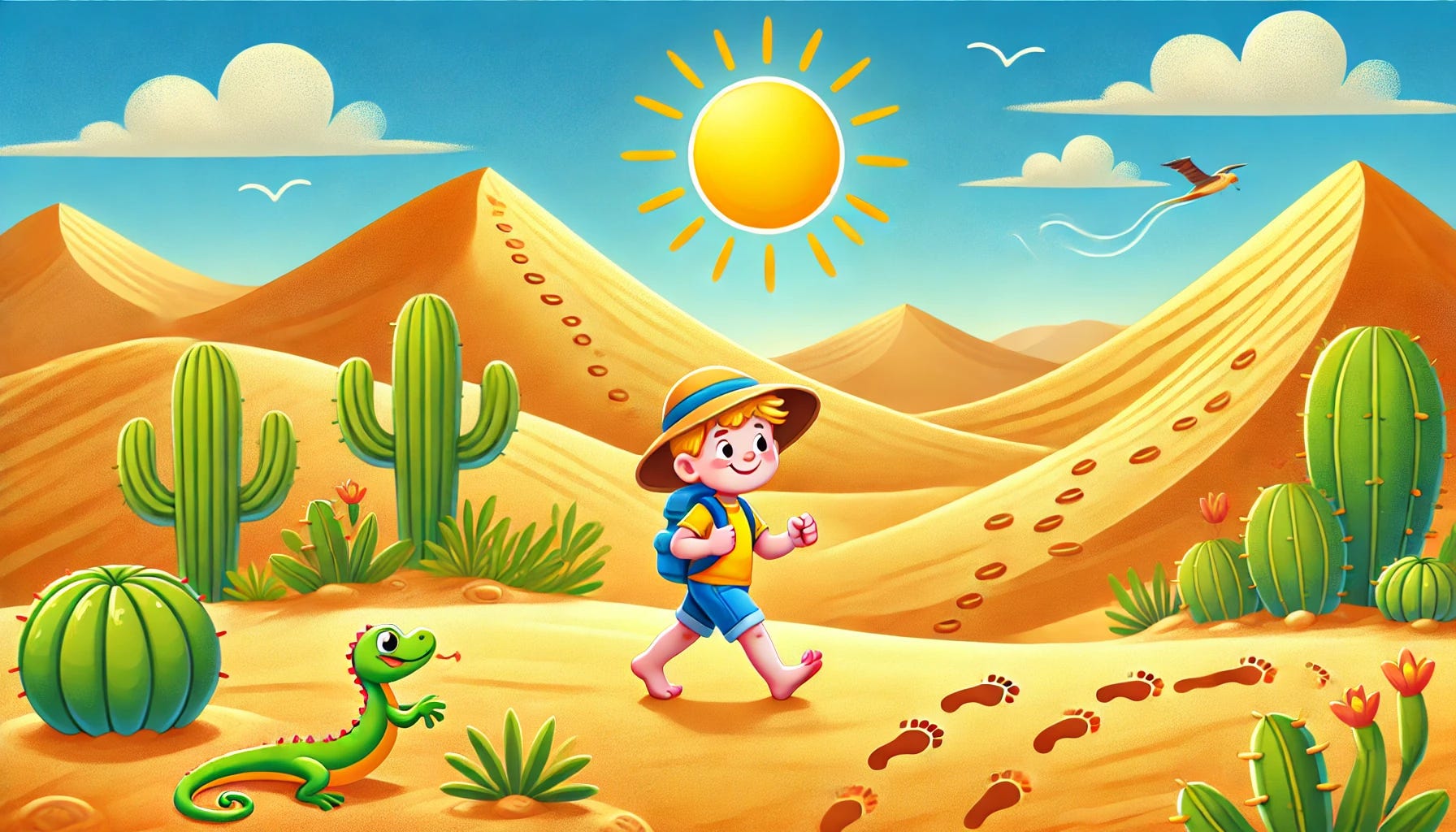 🌵 Deserts have unique plants and animals like cacti, camels, and lizards.🌬️ Winds from deserts can spread nutrients to other parts of the world!🦕 Some deserts hide dinosaur fossils buried under the sand!