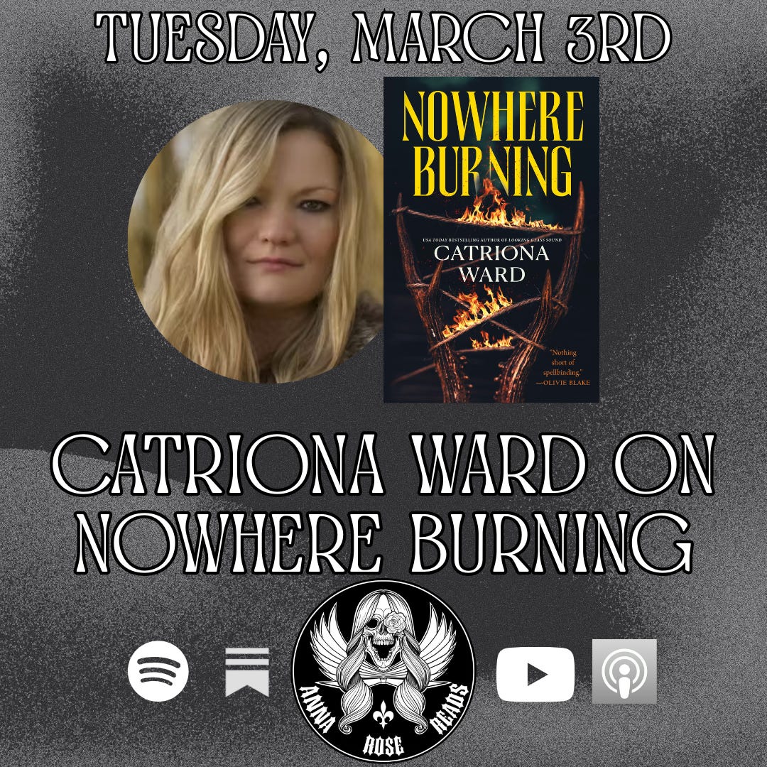 A guest I have been DREAMING of chatting with for years, Catriona Ward joins me to chat about her latest, Nowhere Burning. We discuss the book’s inspiration, the combination of themes that stem from Lord of the Flies and Peter Pan, what it’s like to find home in unconventional spaces, and if we ever really grow or change. This was such a lovely conversation, and I am so very fortunate for Catriona and her time. Links to purchase a copy of Nowhere Burning or to keep up with Cat on socials/on tour can be found below:
