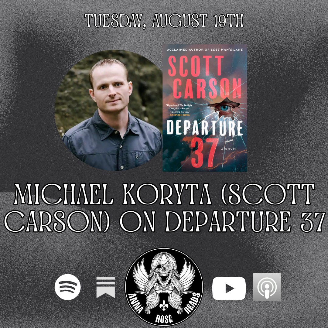 New week, new episode! Happy to welcome Michael Koryta (aka Scott Carson) to the podcast to talk about his most recent release, Departure 37. We discuss weird science, weird history, and well, just the plain old weird employed in the novel. It’s a really great conversation that feels timely considering the emergence of AI and other worldly debates. We also touch on a few aspects regarding Lost Man’s Lane, one of my favorites books, full stop. To order a copy of Departure 37 or keep up with Michael on socials, check out the links below: