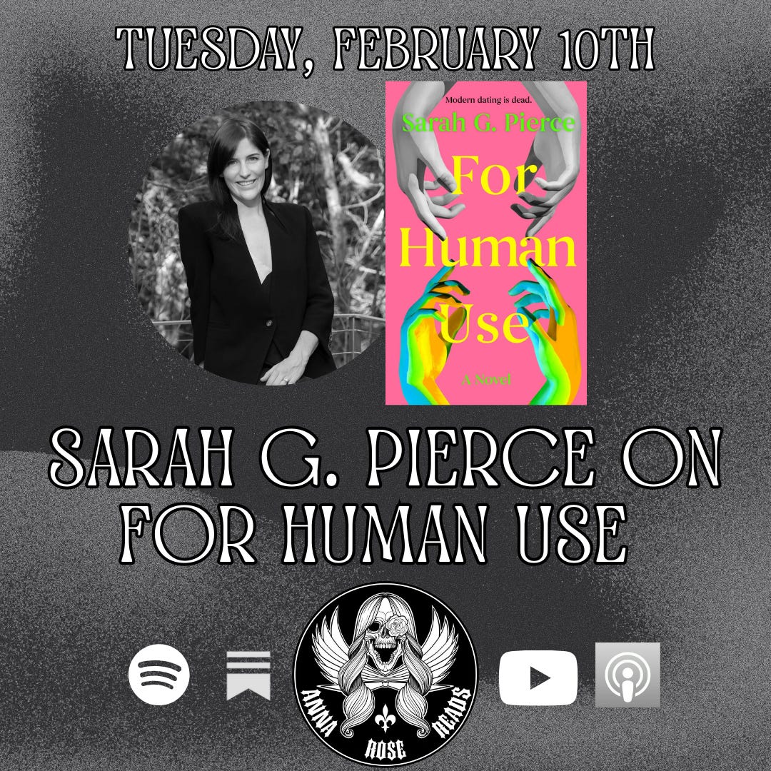 Debut author Sarah G. Pierce joins me to chat about her novel, For Human Use, one of the more unique and entertaining reads I’ve encountered in recent history. We chat about the nuances of social participation, the horrors of dating in every iteration, the need for deeper conversations around our big problems, and the corpse-shaped AI-dilemma this book confronts. For Human Use is on shelves TODAY, February 10th, from Run For It. If you’d like to keep up with Sarah or order a copy for yourself, check out the links below: