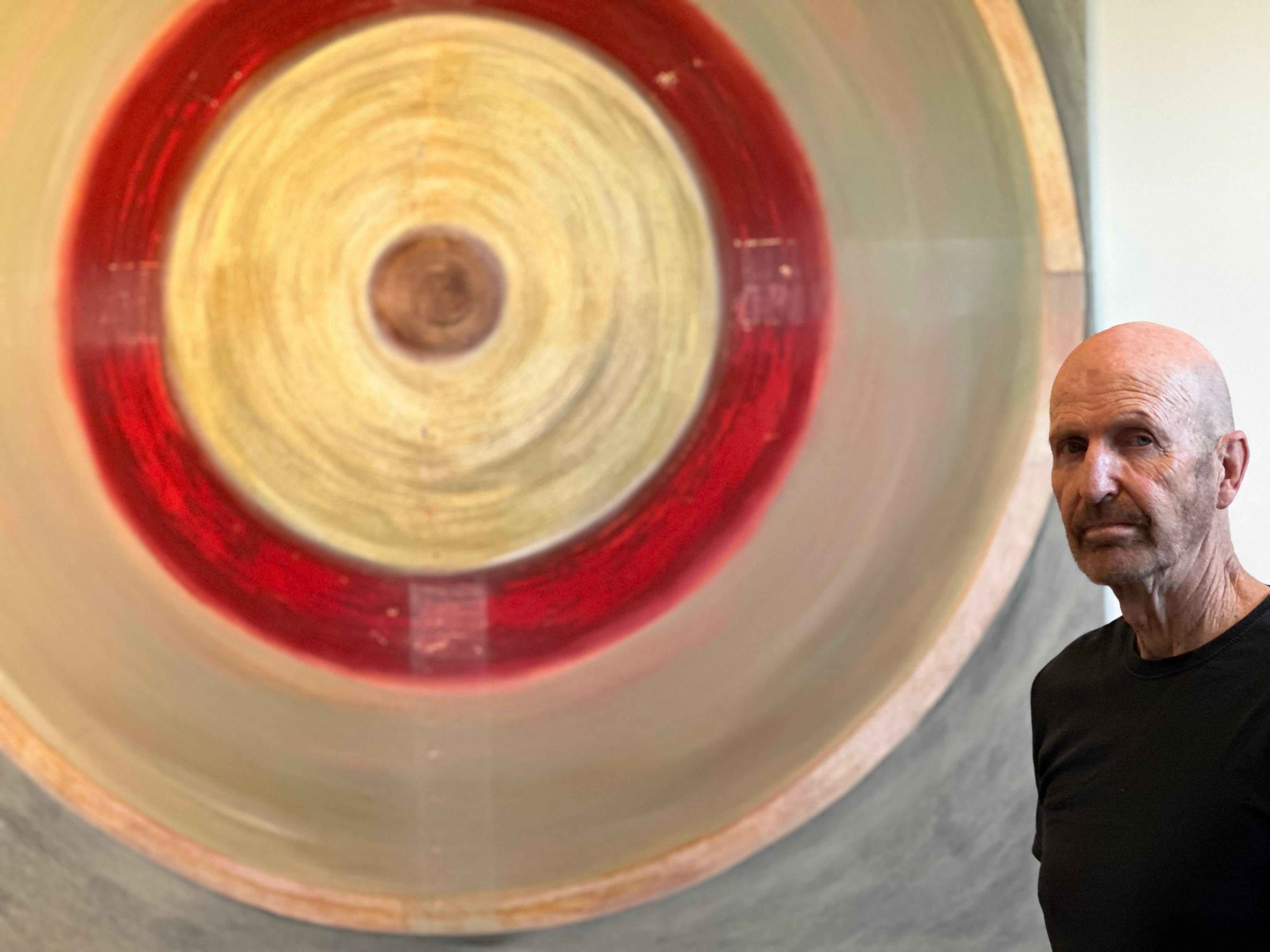 Thanks to everyone who helped me overcome my fear of flying, especially his eminence Sir Michael Monk (nee “The Earl”), pictured below with his signature painting, “Bullseye.”