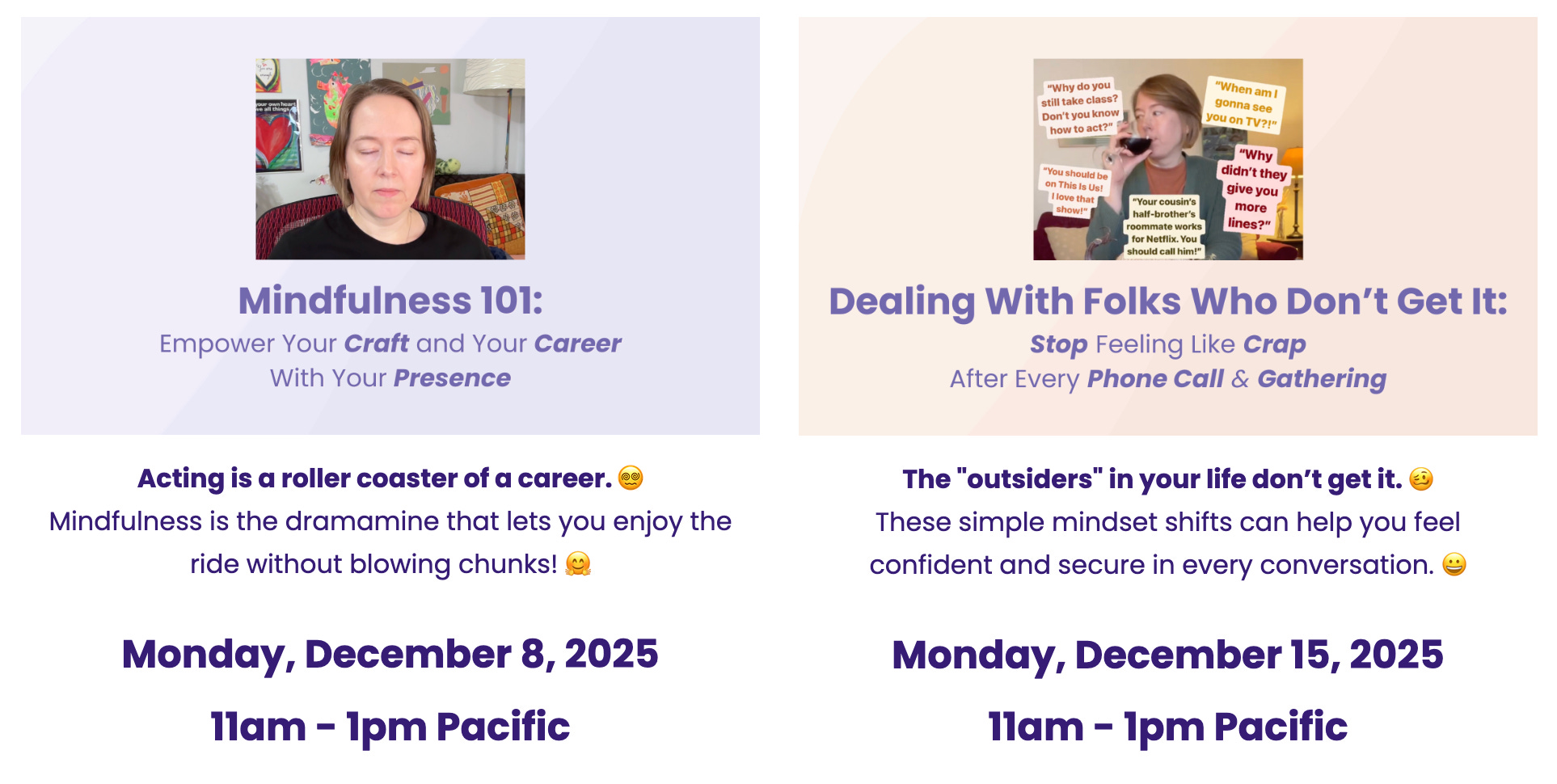 I’m hosting two mindfulness and mindset workshops in December!