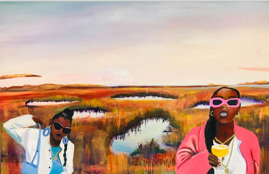 Artwork: “Get Me The Fuck Out This Salt Marsh,” oil on canvas, Cintra Wilson 2023.