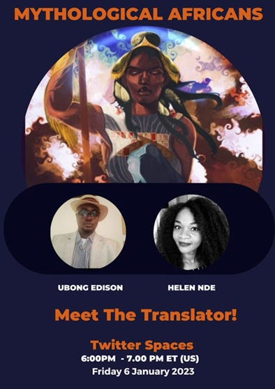 It was grueling and I am never doing anything like that in as short a time-frame as I did it in again…I think? It was also one of the most exhilarating times of my life and this was largely because I got to work with amazing and talented people like Ubong Edison. I first met Edison in this MA Twitter Space discussion during which he gave us quite the education on Ibibio culture. So he’s the first person I thought of when I decided I wanted to translate one of the poems in my book to the language of the people from whom the story comes. Working with Edison was so much fun. It was clear he loves his people and their culture. Things got even better when he agreed to sit down and chat with us about his translation journey.