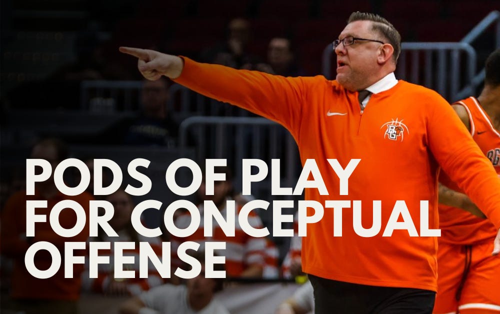 Bowling Green's head coach, Todd Simon, shares his philosophy for basketball conceptual offense, including the creating pods of plays, using small-sided games, generating more free throw opportunities, and teaching shot selection.