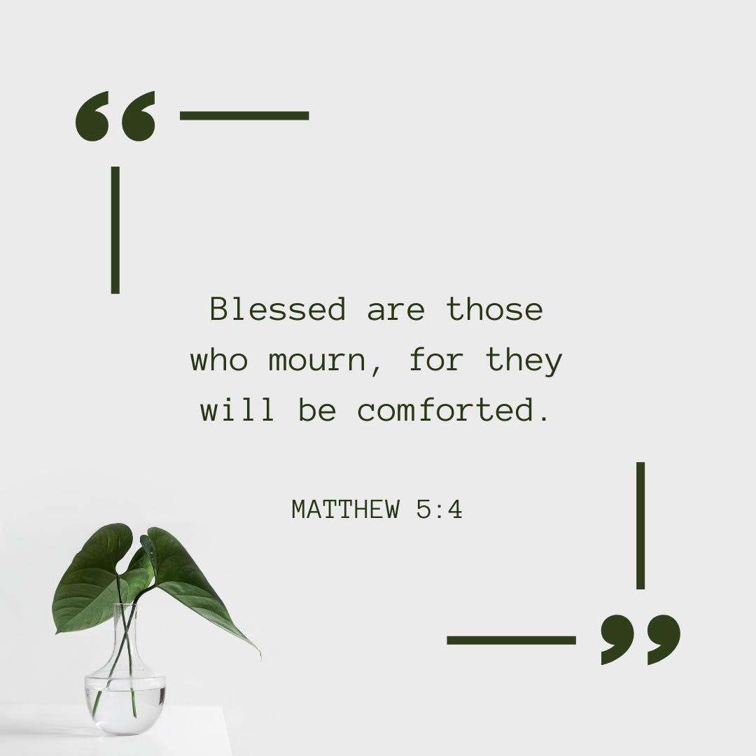 The beatitudes always intrigued me and in my season of grief, I was really drawn to them - especially verse 4. I wanted to feel happy; blessed - but the sadness was too overwhelming. As I came back to these verses over and over - literally for a year, I finally understood.