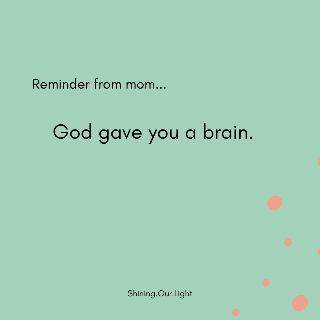 Once again, I don’t think AI is 100% evil, I just think we need to consider our intentions when using it. As a kid, whenever I had a problem, my mom would say, “God gave you a brain…” She didn’t solve the problem for me or give me the answers I wanted to hear, she encouraged me to use my own brain to figure things out. She taught me to ask questions and seek truth. Whether I couldn’t find my shoes or I needed to work through a particular issue, I was forced to think – and I believe it would be wise of us to do the same with the advances of AI. God gave us a brain. It’s a beautiful thing when we use it.