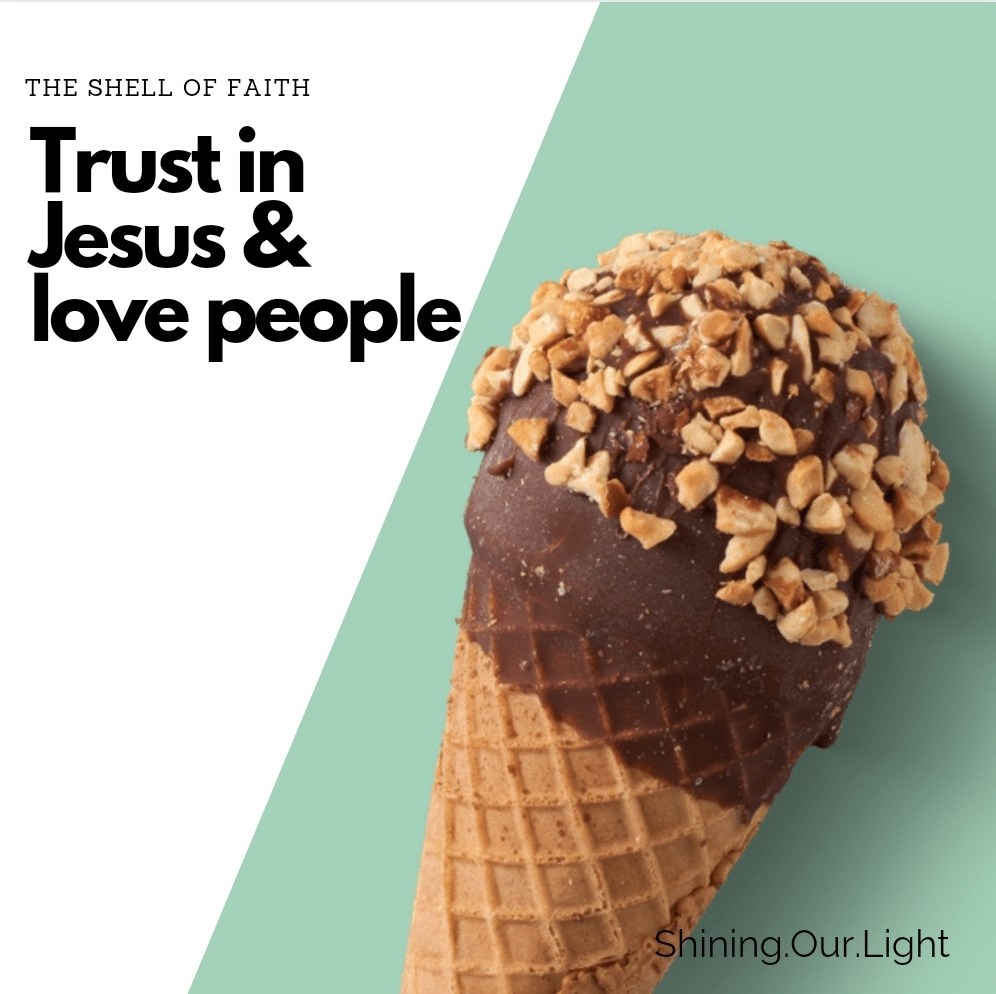 As you already know, I am a simple girl. Everything about me is simple (except my anxiety), so I appreciate John’s simplicity. There are no long lists to consider. No complicated tasks to remember. No fear of forgetting and no need for a post-it note reminder. Just two things – trust in Jesus and love people. When we do these two things, we know we are children of God because we can only do these things by staying near to him, walking in obedience, and loving well. This is the shell of our faith. It isn’t a magic chocolate ice cream topping that you can crack. It is a sturdy shell of faith, filled with the Holy Spirit, who guides us on a beautiful journey this side of heaven and into the presence of the one who saved us in the first place.