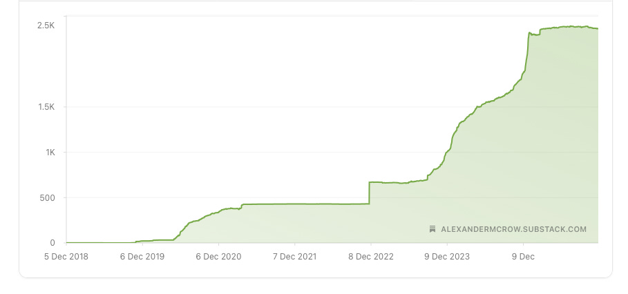 With A Fall In Time, I had hoped that, like last year, Substack Notes would have driven considerable engagement and sign ups. That has simply not happened. A few of you have found me that way but, for the most part, those Notes disappear into the ether without a restack or a comment beyond a very small group of you, such as the frankly awesome Susannah Fisher, who I know has enjoyed following along again this year, despite having done so already.