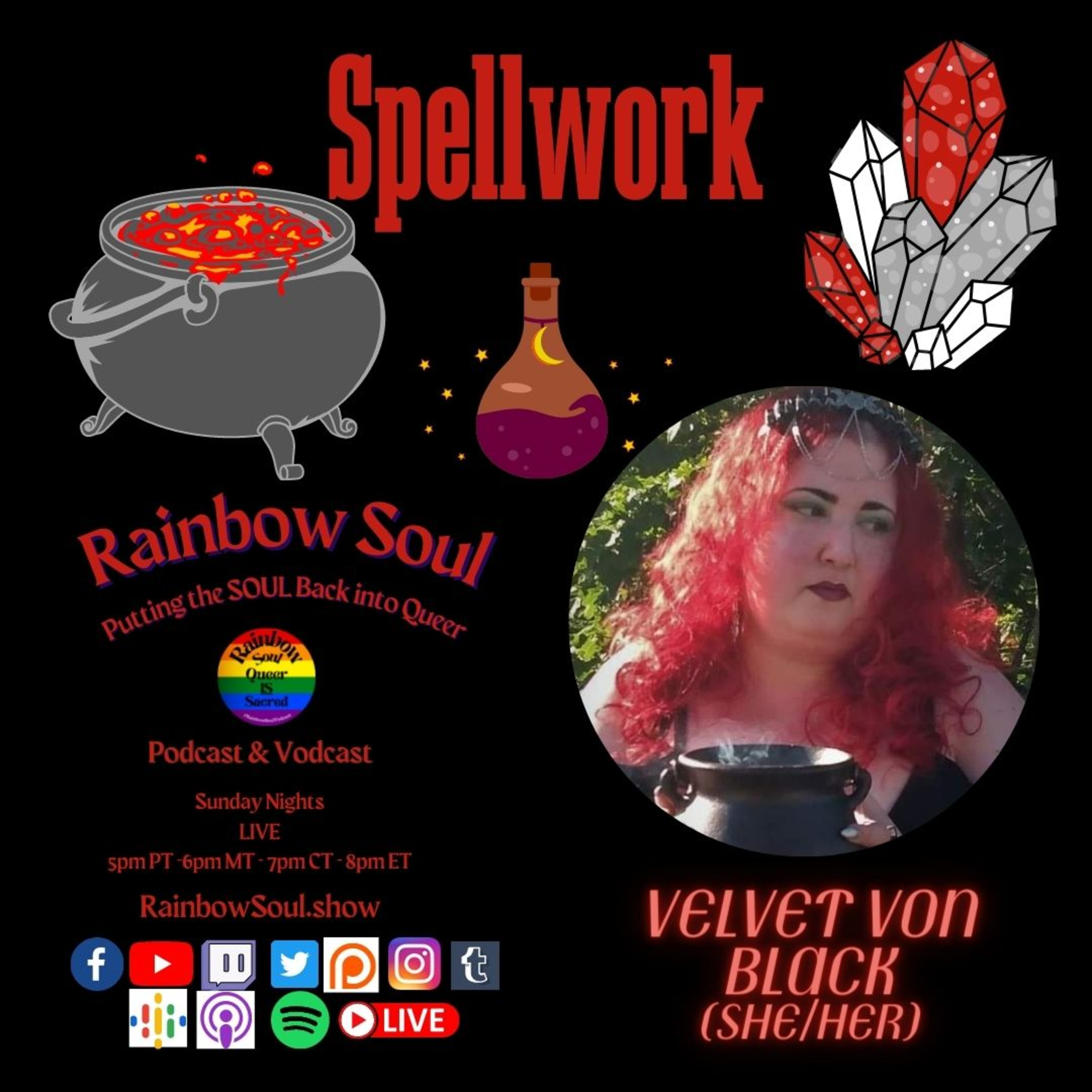 Rainbow Soul will discuss some basic techniques and ideas to use for your next Spell-working. Tune in to explore the basics of spell-work with Velvet Von Black of the Crystal Underground.