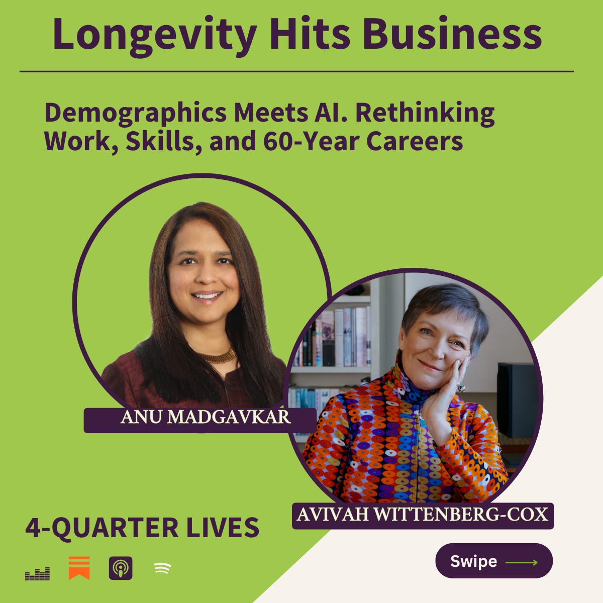 In this week’s 4-Quarter Lives Podcast, Avivah Wittenberg-Cox is joined by Anu Madgavkar, a senior partner at McKinsey & Company, to explore the collision of two defining forces shaping our future: global demographic decline and the rapid rise of artificial intelligence.