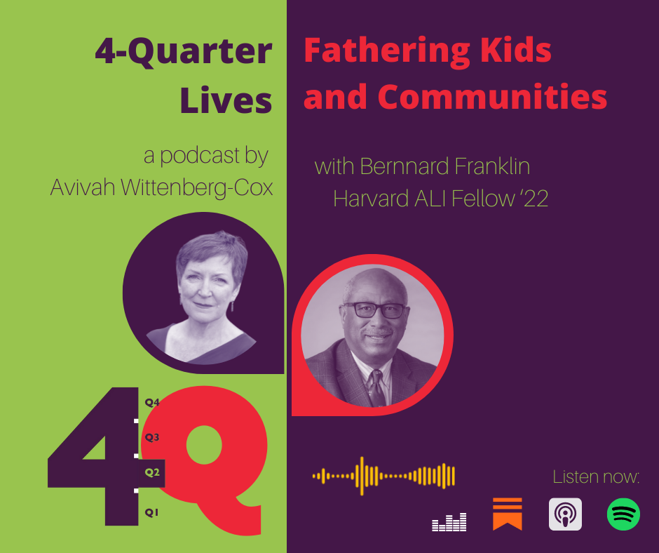 Bernard Franklin is Avivah Wittenberg-Cox’s guest this week on 4-Quarter Lives. He is a great example of how programmes such as Harvard’s Advance Leadership Initiative give the opportunity to review where we are in life, reconsider how our skills and experience can best be used, and recharge batteries after an intense and at times bruising career and life.