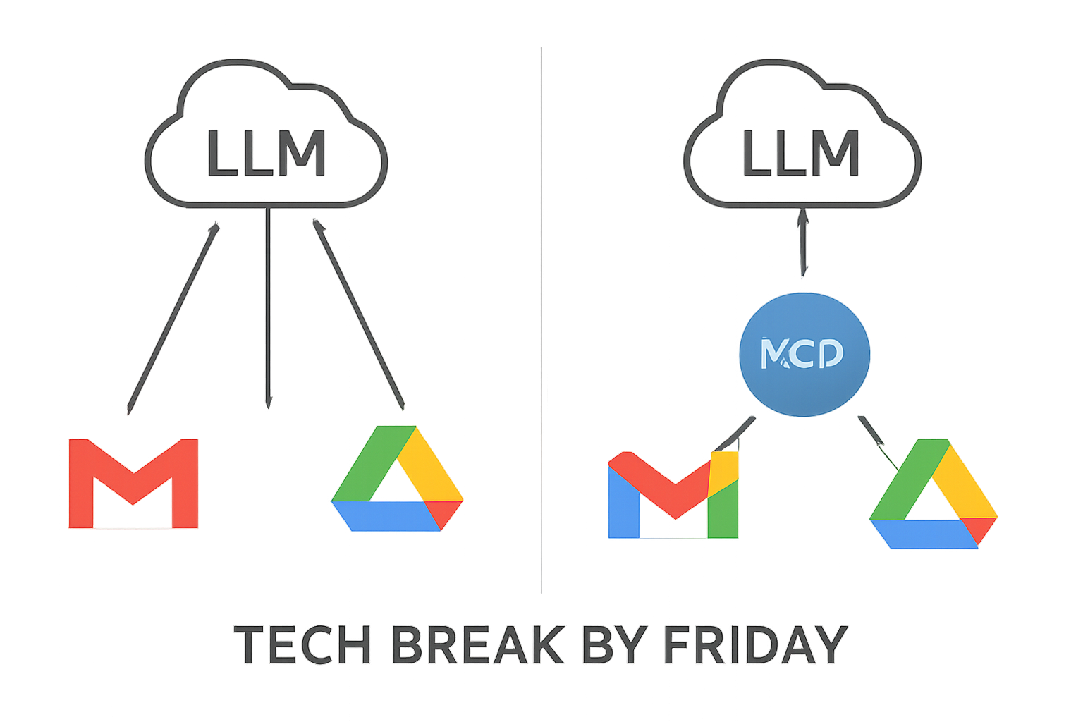 In this episode of Tech Break by Friday, we dive into the Model Context Protocol (MCP) — the game-changing technology that lets AI tools like chatbots and apps seamlessly connect with services like Gmail and Google Drive. Learn how MCP simplifies AI integrations, boosts security, and opens up exciting possibilities for automation. Plus, we walk through a beginner-friendly MCP project using aci.dev so you can build your own AI-powered workflows. Whether you’re curious about AI or a tech enthusiast, this episode breaks down the future of AI-tool connections in an easy-to-understand way.