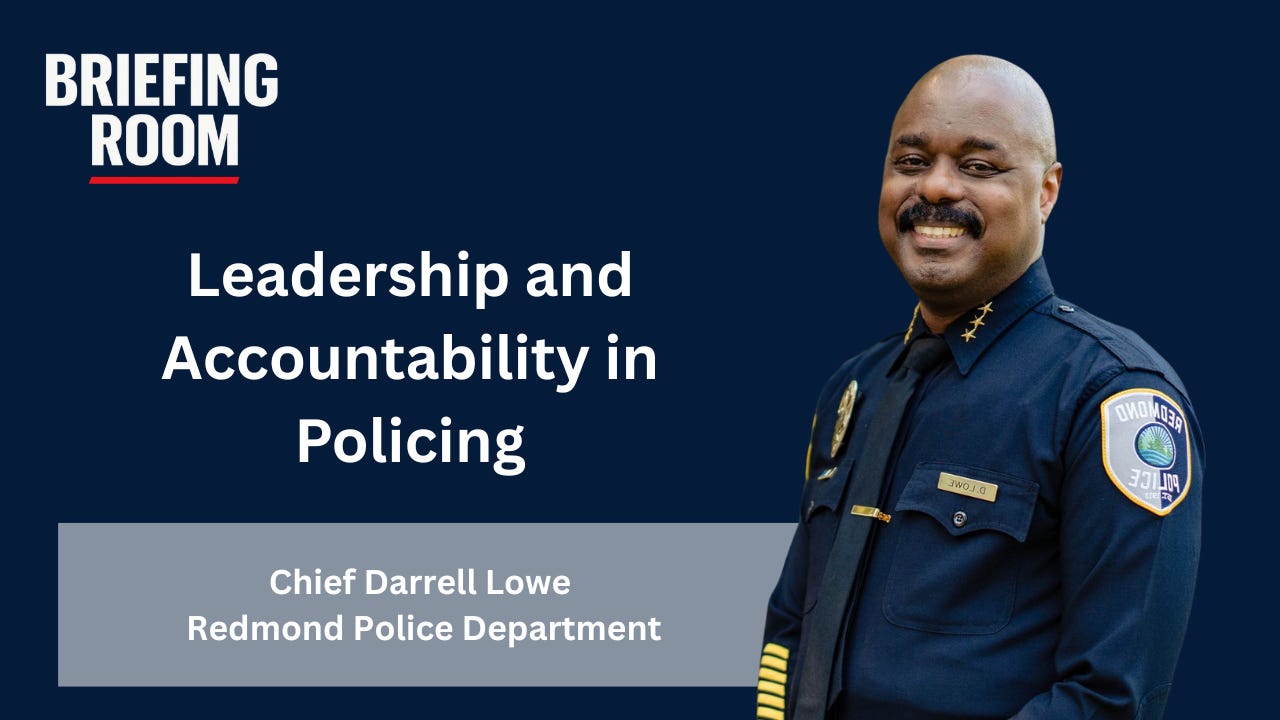 In this episode of The Briefing Room, host Mike Wagers sits down with Redmond (WA) Police Chief Darrell Lowe for an in-depth conversation about leadership, accountability, and the future of public safety technology. Chief Lowe reflects on his journey from growing up in Los Angeles to the Santa Monica Police Department and leading the Redmond, Washington Police Department, discussing how early career “knucklehead” mistakes shaped his approach to leadership. He shares insights on race and policing, the importance of professional involvement beyond one’s own department, and Redmond’s pioneering Drone-as-First-Responder (DFR) program—now one of the nation’s leading models. The episode also explores AI’s growing role in policing, ethical considerations, and how technology can support officer wellness and more effective service to the community