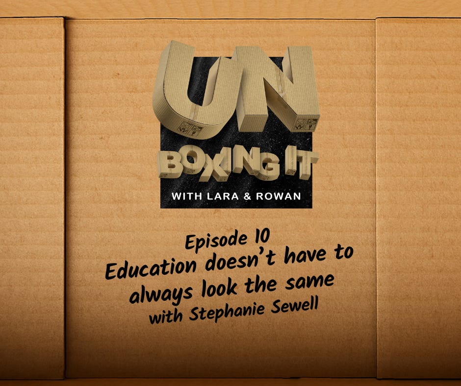 Lara here. Rowan and I have had interesting educational journeys - both for ourselves and for our children. That made interviewing Stephanie Sewell to talk about education and how it doesn’t need to look one specific way to have value something we had to unbox.