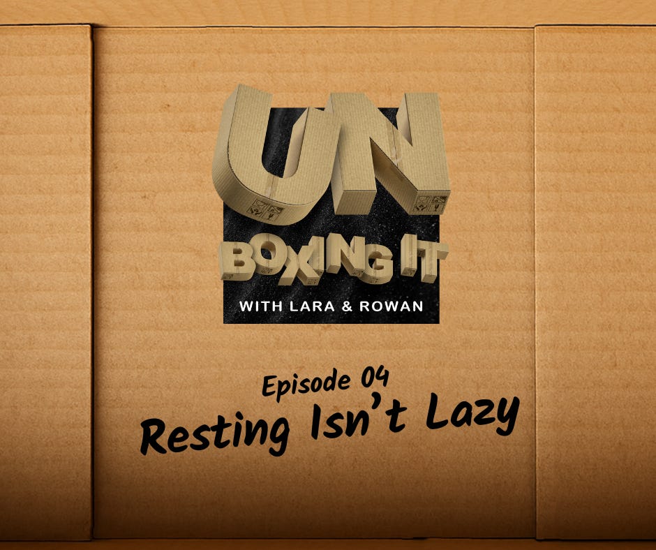 [00:00:31] Lara: Welcome to another episode of Unboxing It. Today we are gonna talk about one of my very favorite topics, and it's, a saying that I almost have coined as my own. I made stickers with it. Like I really love it because I think it's so important and it is resting isn't lazy.