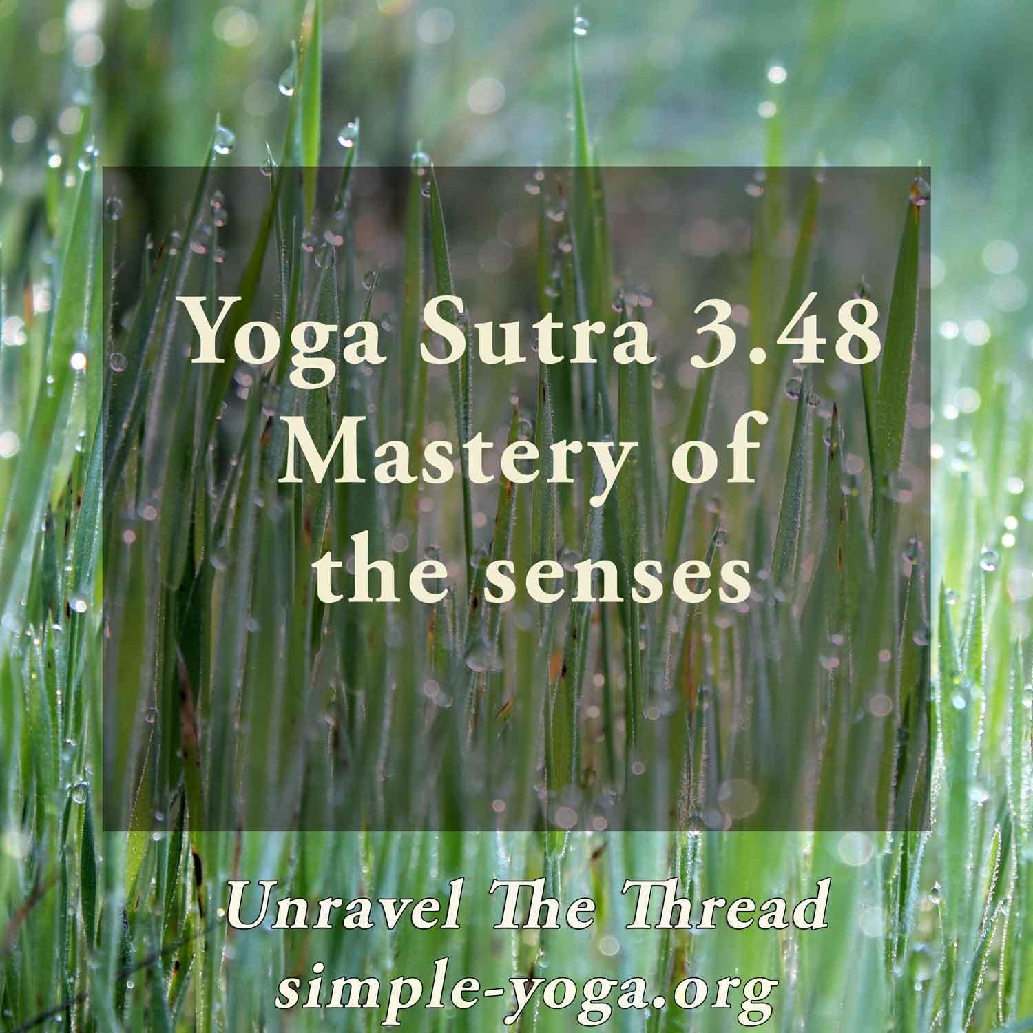 Culmination of pratyahara. Meditative integration focused on the senses at various levels. How in tune are you with your own perceptual systems and processes? What is the role of your senses in your life?