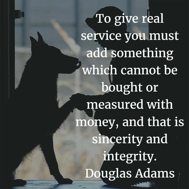To give real service you must add something which cannot be bought or measured with money, and that is sincerity and integrity. — Douglas Adams, novelist