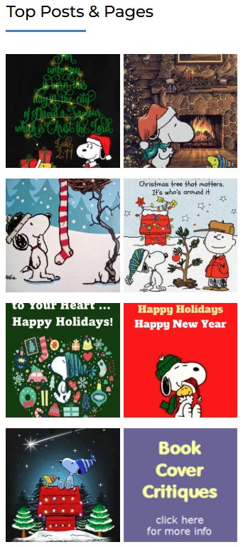 As you’ll notice in the graphic below, 7 of the top pages on my website during the week of Christmas 2025 were pages where I share holiday greetings with my website visitors, newsletter subscribers, and social media followers. Over the years, I’ve sent many such greetings. And, as it happens, those greetings send me more visitors year after year — visitors who want to share greetings via their various social media profiles.