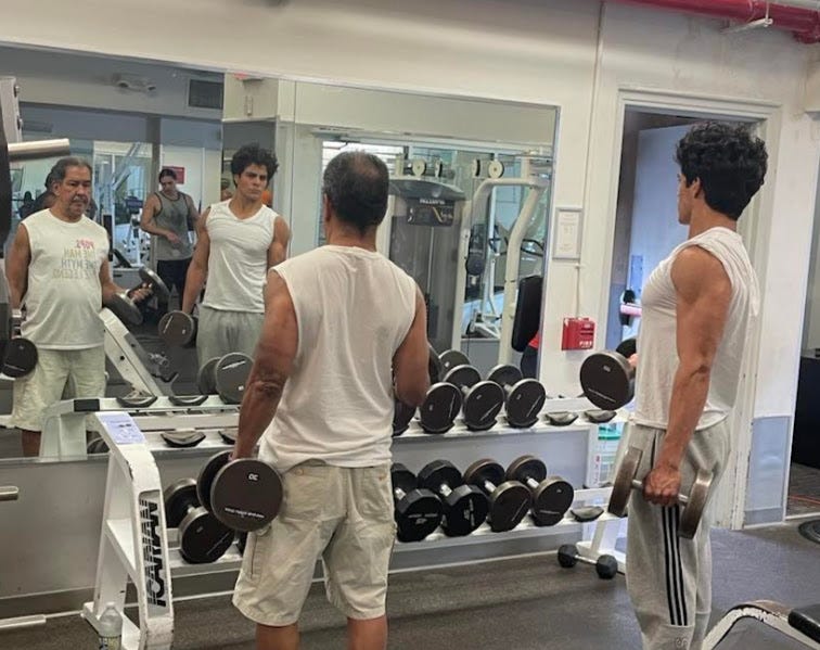 Ethan working out with his grandfather
