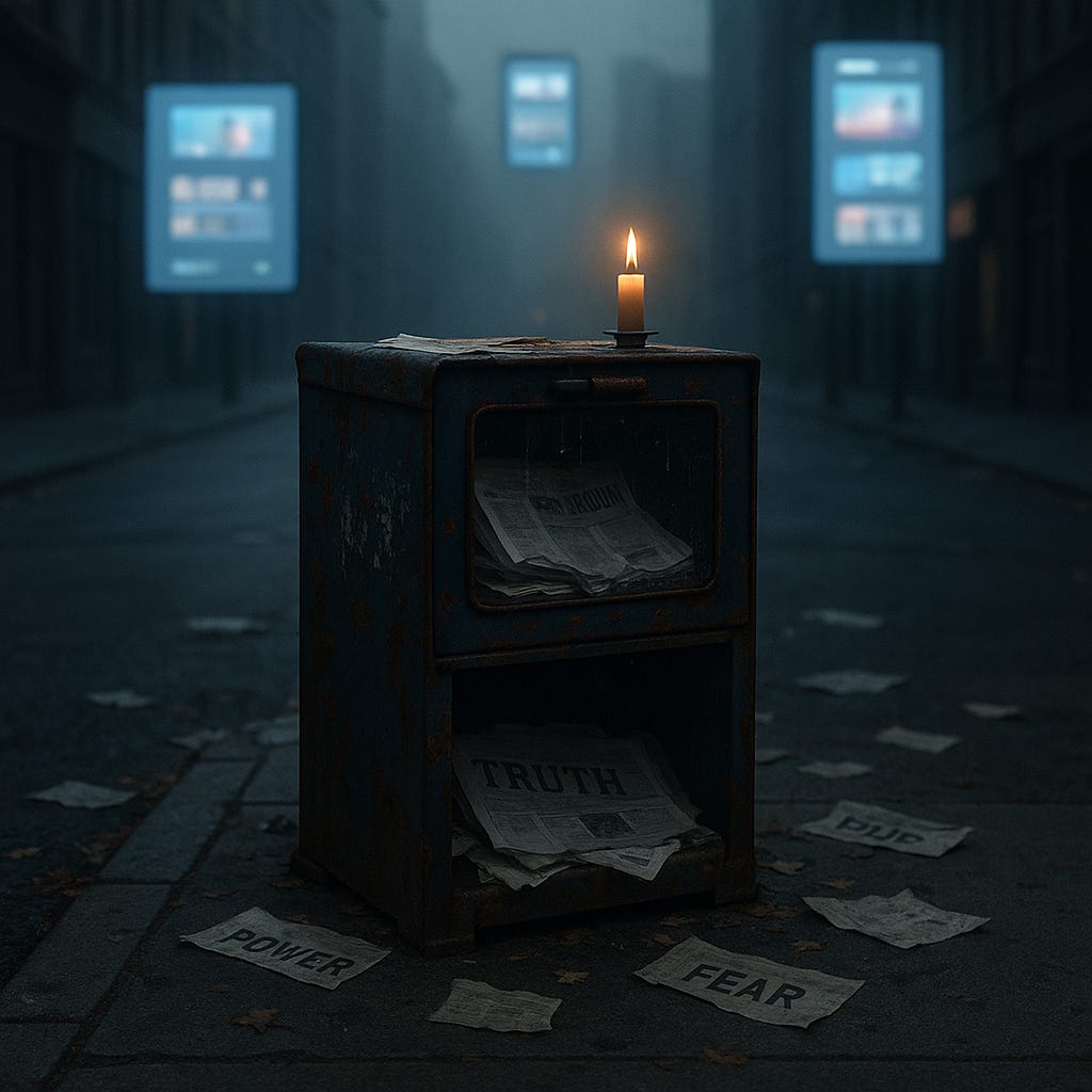 The internet did not kill truth outright. It smothered it. It made truth harder to distinguish from fraud, conscience harder to hear above spectacle. It turned news from a flawed but bounded enterprise into a hall of mirrors, where every reflection looks equally real, equally unreal.