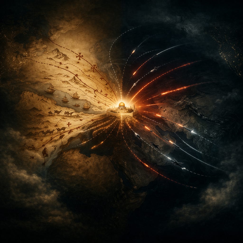 In 1099, the men who entered Jerusalem believed they were marching toward God. That is how they would have described it. That is how they endured the distance. That is how they justified the blood. But what they were also marching into, whether they knew it or not, was a new kind of conflict: one in which a city could recruit strangers across centuries.