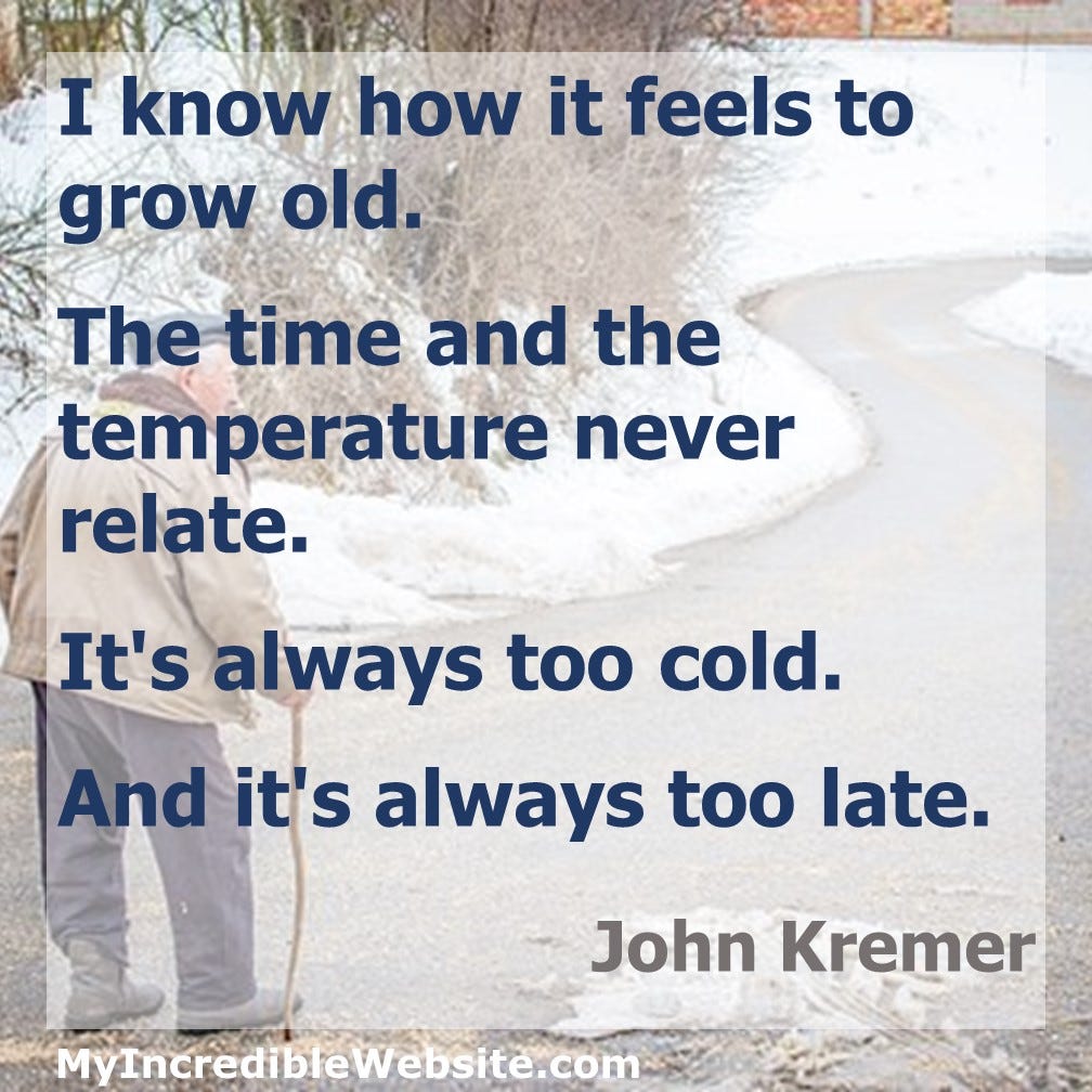 I know how it feels to grow old.The time and the temperature never relate.It's always too cold.And it's always too late.