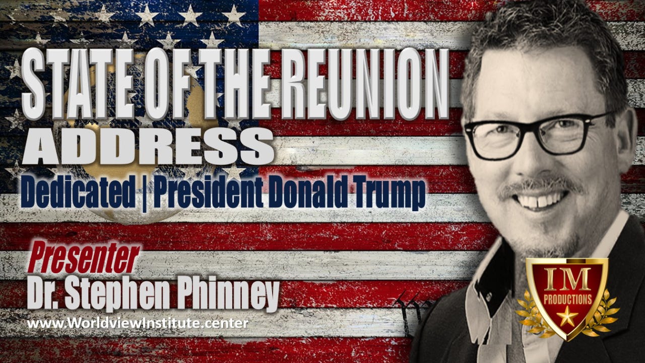 #IM Identity Matters Productions presents, "The State of Reunion Address," dedicated to President Donald J. Trump. This is an annual address by Dr. Stephen R. Phinney presented to the global authentic church of Jesus Christ. It has been noted as, “One of the most powerful speeches delivered to the full Body of Christ.” We hope you are deeply moved and challenged, by this forthright speech.