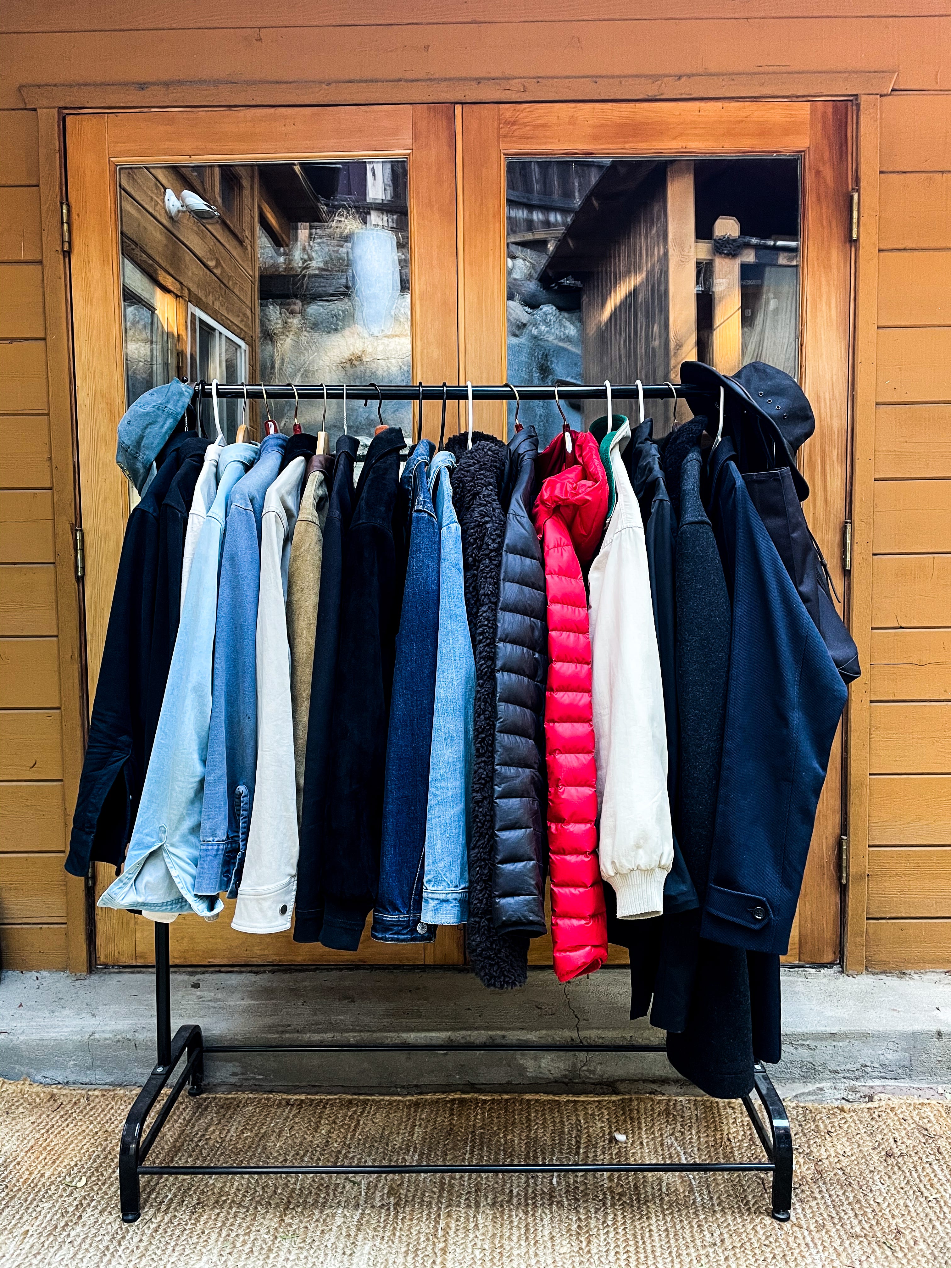 He sent me this photo. These are his clothes. He told me that this is 75% of what he owns. His goal is for all of his clothing to fit on this one rack.