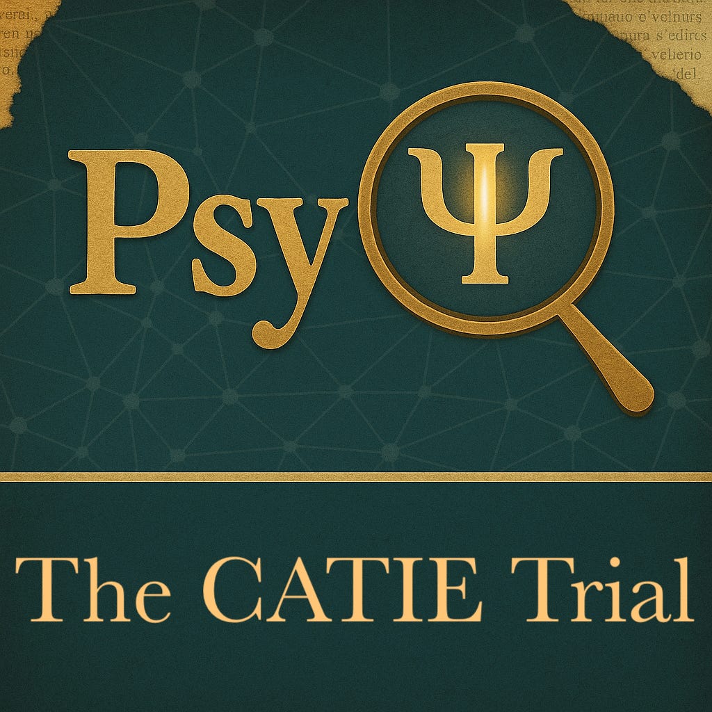 This is a journal club discussion on the CATIE trial. We cover the study's background and methodology to its critical appraisal and clinical impact. Keep in mind this merely a summary of a journal article and with the use of AI we are susceptible to some hallucination. Please refer to the source material linked below for the most accurate information about the CATIE Trial.