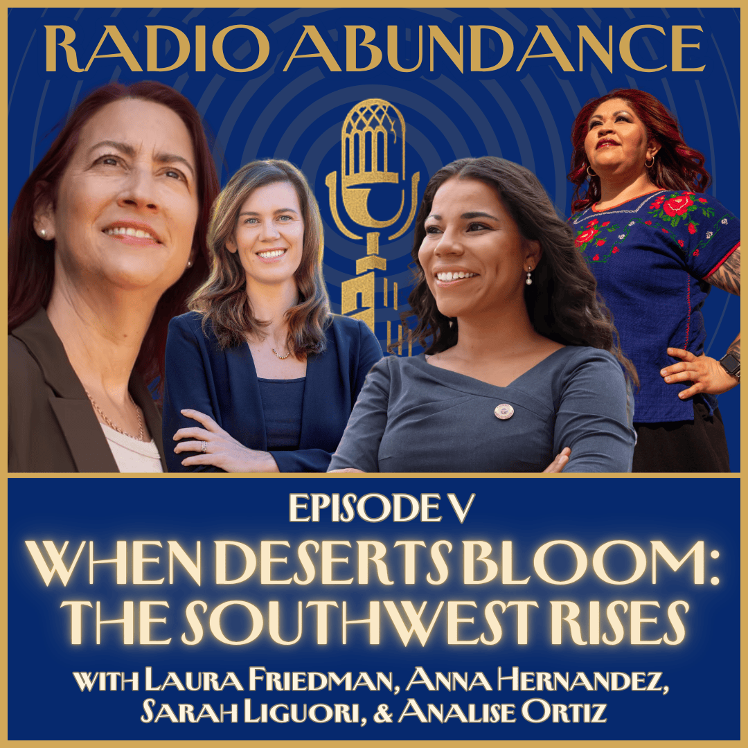 This week on Radio Abundance, we sit down with four amazing women who are blazing the trail to Progressive Abundance in the United States Congress and in Arizona. First, the team sits down with United States Congresswoman Laura Friedman, a Hollywood Film Producer turned Mayor turned California Legislator, now in the US House of Representatives, who has fought her whole life to build homes for people, not cars. Then, we head to Arizona, where we hear from a trio of local lawmakers: Phoenix City Councilmember Anna Hernandez, Arizona State Representative Sarah Ligouri, and Arizona State Senator Analise Ortiz. Together, these three musketeers tell us how they've worked arm-in-arm to rise above challenges and create neighborhoods where culture and communities can thrive.
