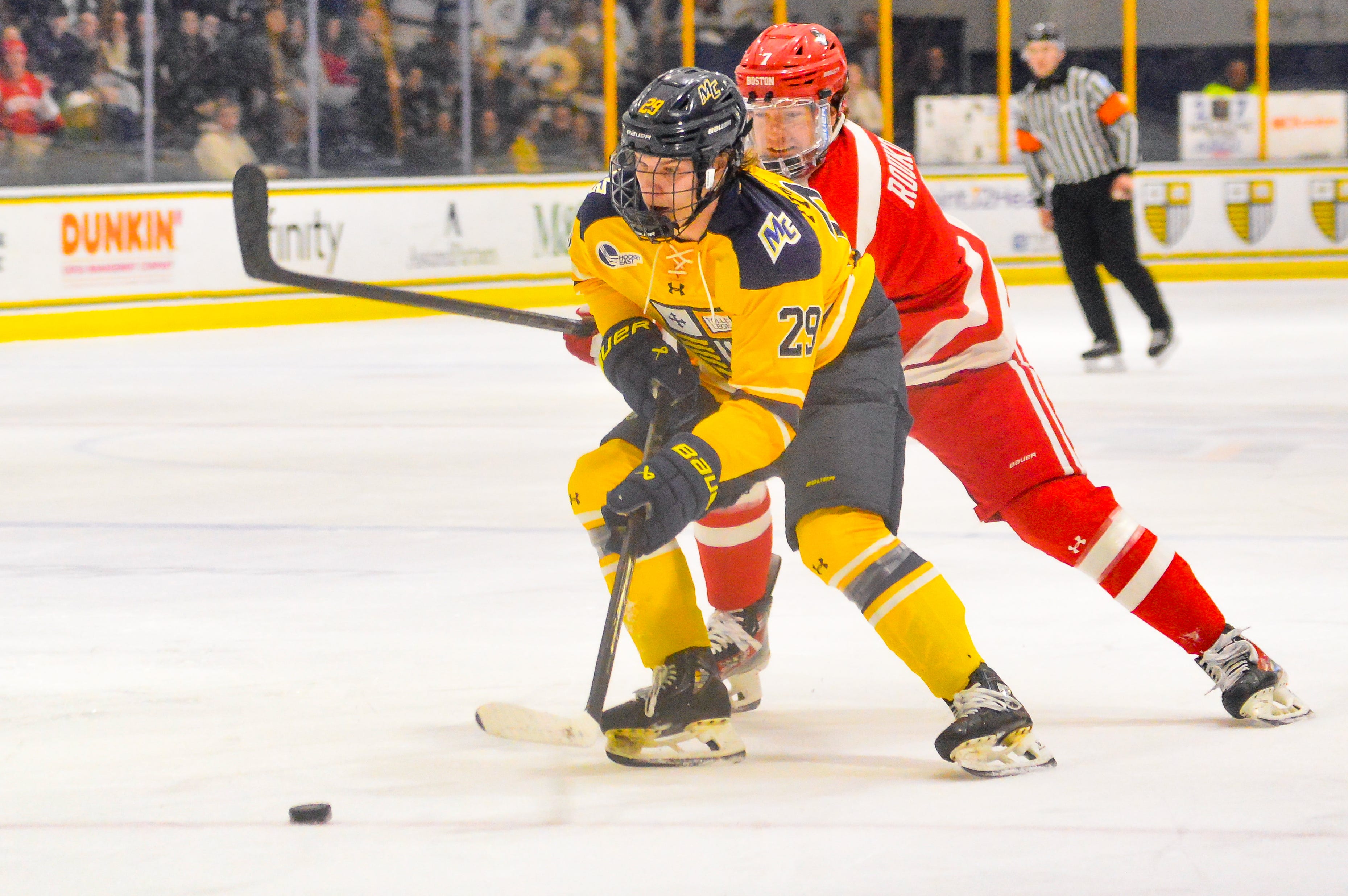 NORTH ANDOVER — Merrimack beat Boston University 2-1 in overtime on Friday night. Caelan Fitzpatrick scored the game-winner for the Warriors. Nick Pierre scored for Merrimack in the first period and Max Lundgren made 24 saves.