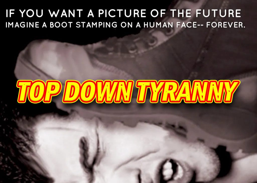 Top down control is the polar opposite of liberty, and in many ways it’s very close to slavery—it might even be considered a slippery slope toward outright enslavement.