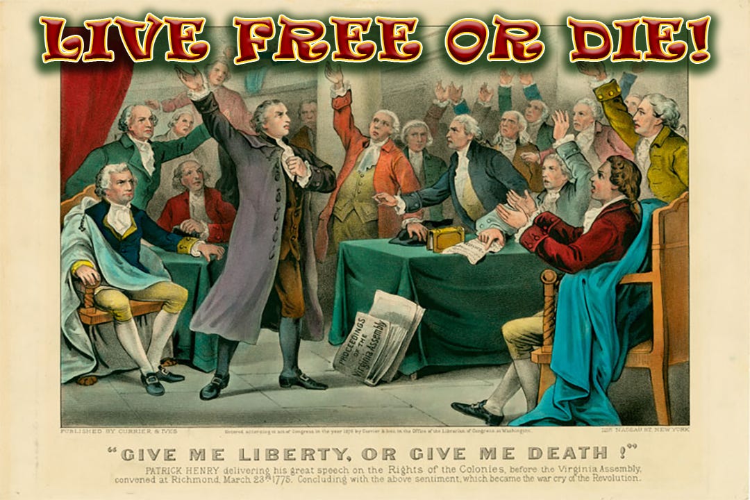 In doing so, over time, a new society was formed, a society of free individuals that would declare themselves Americans, those who chose to cast off the shackles of tyranny to live as free human beings, who would shout, “Give me liberty or give me death!” and live by the creed of “Live free or die!”