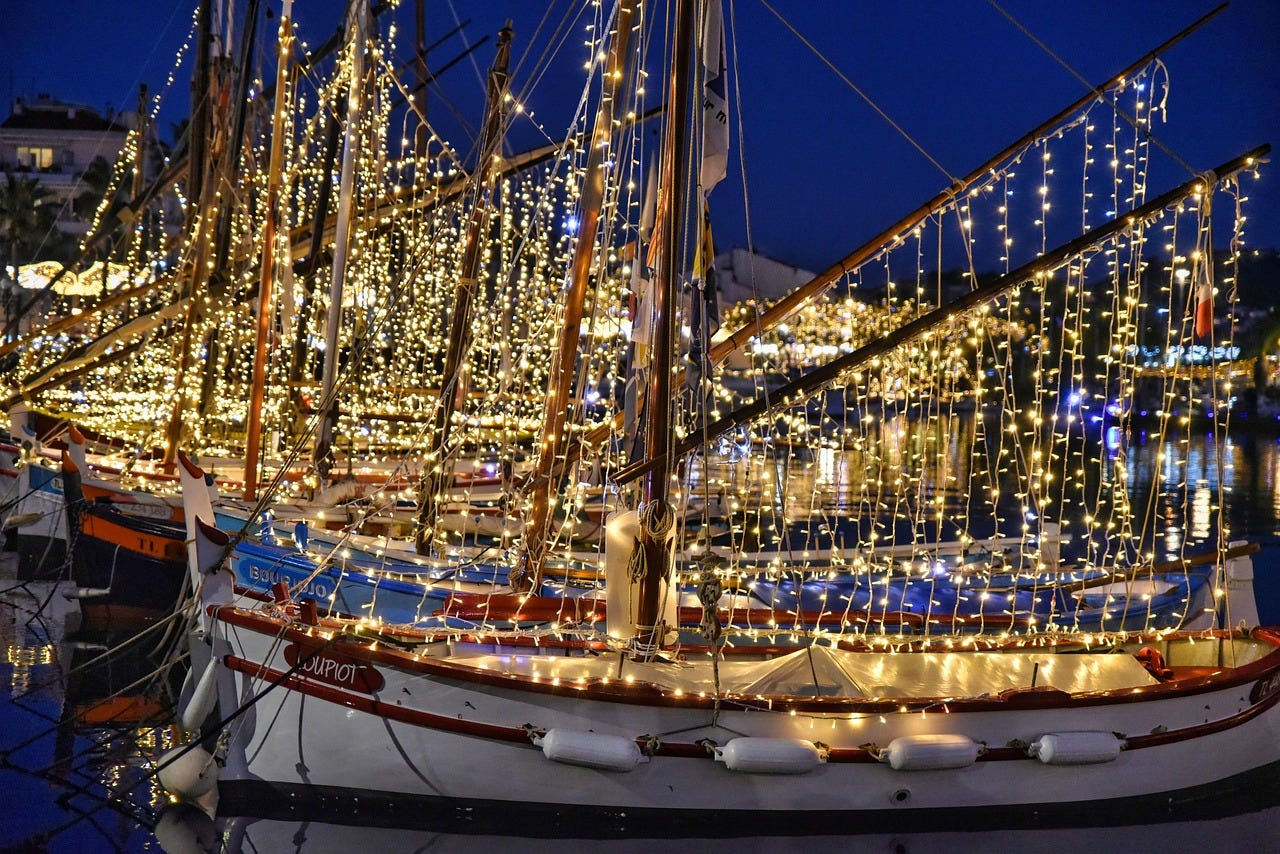 Christmas Goes to Sea Many of Canada’s coastal communities, maybe even all of them where the water isn’t frozen this time of year, have ways of celebrating their nautical connections at Christmas time. Here in Victoria many sailors decorate their boats with Christmas lights the same way that people dress up their houses, illuminating the harbour with holiday cheer; fishing boats, work boats, pleasure boats, even the Royal Canadian Navy gets involved.