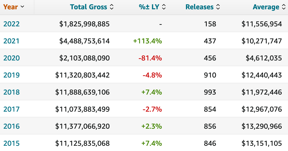 Of the fifteen shots at theatrical release that have not been taken in 2022, compared to 2019 and before, how many hits were there? One or two in the first four months of the year can make a mammoth difference.