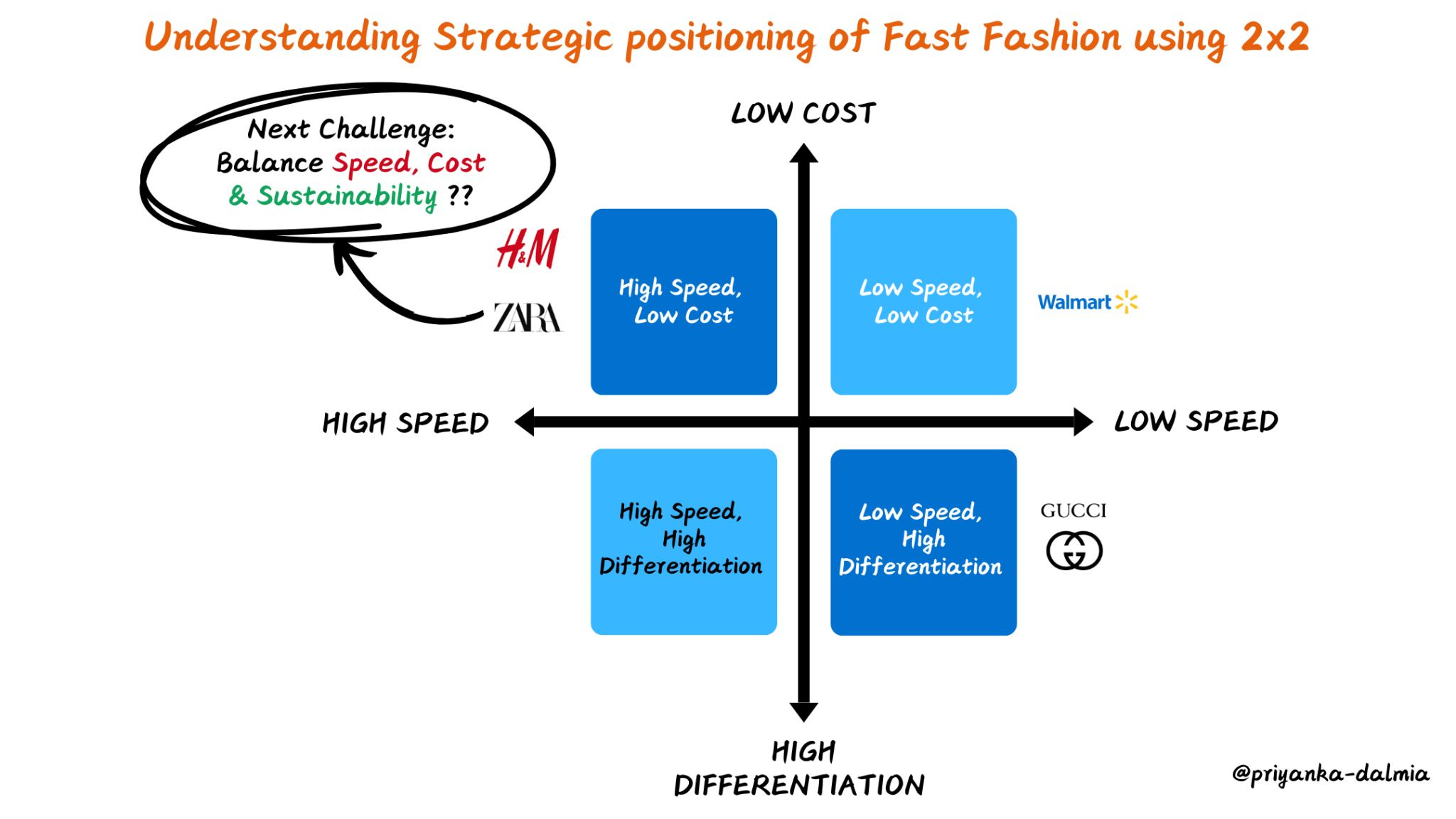 Every time I walk into Zara I wonder how they have new designs on the display.Let's Decode their Business Strategy in [ 2 X 2 ]Zara positions itself as High Speed & Low Cost ( Mass Premium Fast Fashion )