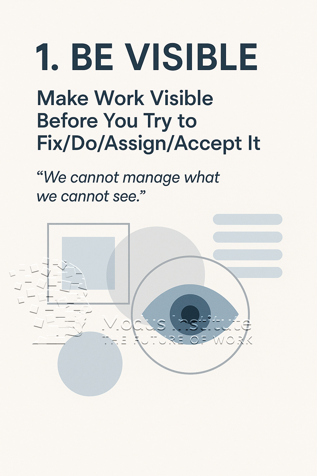 Transform invisible fear-based overload into visible actionable reality through visual management systems. When work becomes visible, teams see where help is needed and how to support each other effectively