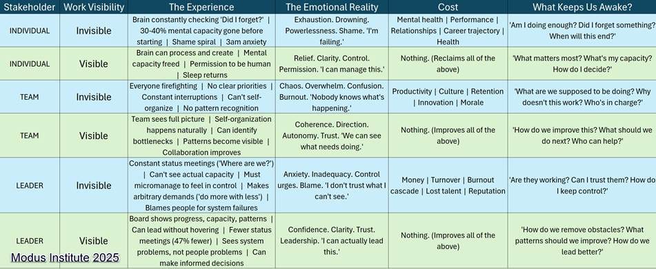 When you can’t see your work, your brain stops processing it. Your team stops self-organizing. Your leaders stop leading.