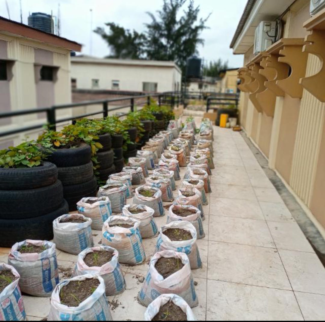 Especially if you farm on paved floor. This yam farmer got away with the location, soil water absorbtion rate in that area. He practiced what we called land intensification, but if you are planning to plant you yam n bag on a pavement.