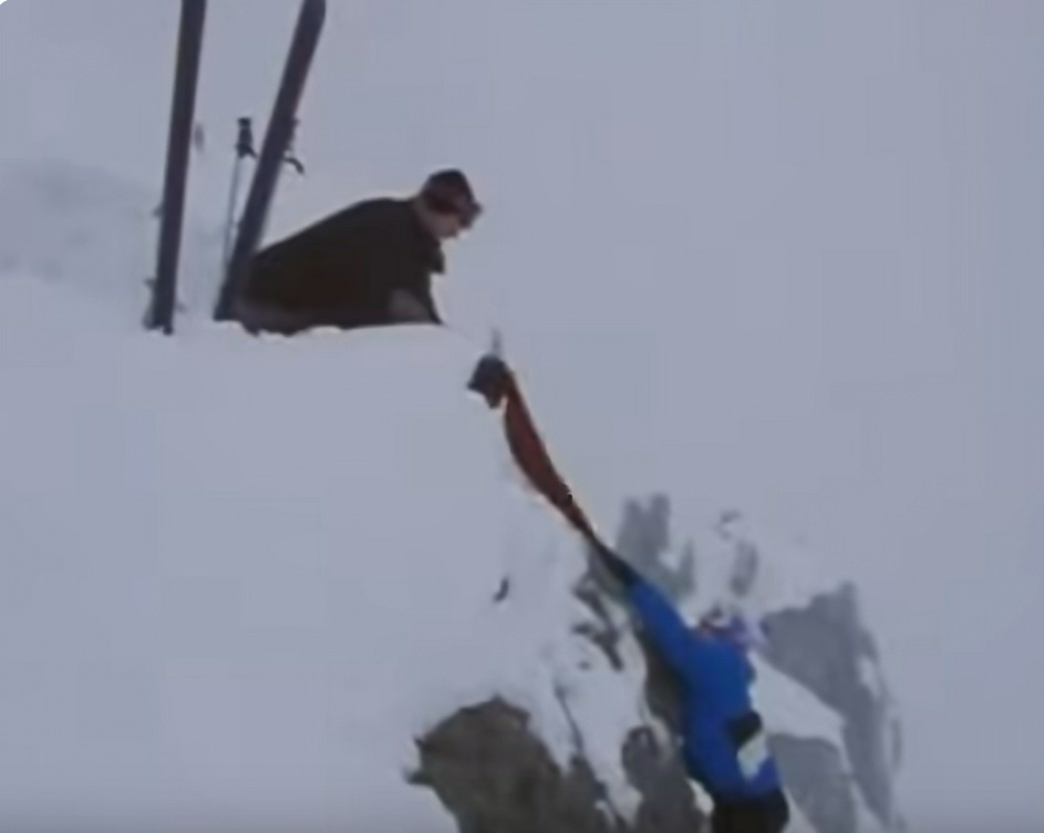Cassidy shares with Max that Dirk is going to take her on the Devil’s Passage, “the gnarliest run on the mountain,” the next day. When Dirk says, “I’d invite you, too, Max, but I wouldn’t want to see you get hurt,” Max gets the measure of the man when he responds, “Yeah, sure, see you around, jerk, I mean, Dirk.”