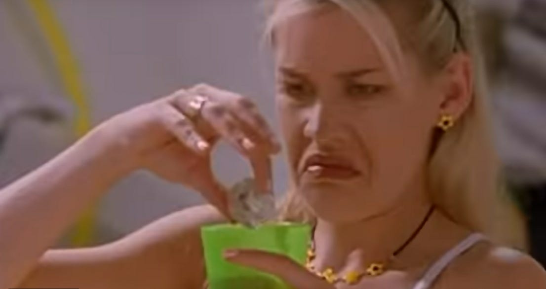 The first prank is pretty innocent - student activities director Tony slipped a fake ice cube with a fly in the middle into Cassidy’s drink, and as she pulls it out with a horrified look on her face, he jumps out with a camera to take a photo, if only so that every photo in the yearbook wouldn’t be staged and posed. As he leaves, Jimmy boasts about how great a prankster he is while Cassidy pretends her water bottle fell (she absolutely knocks it over), and she uses that distraction to tie his shoes together, causing him to fall into the pool when he moves.